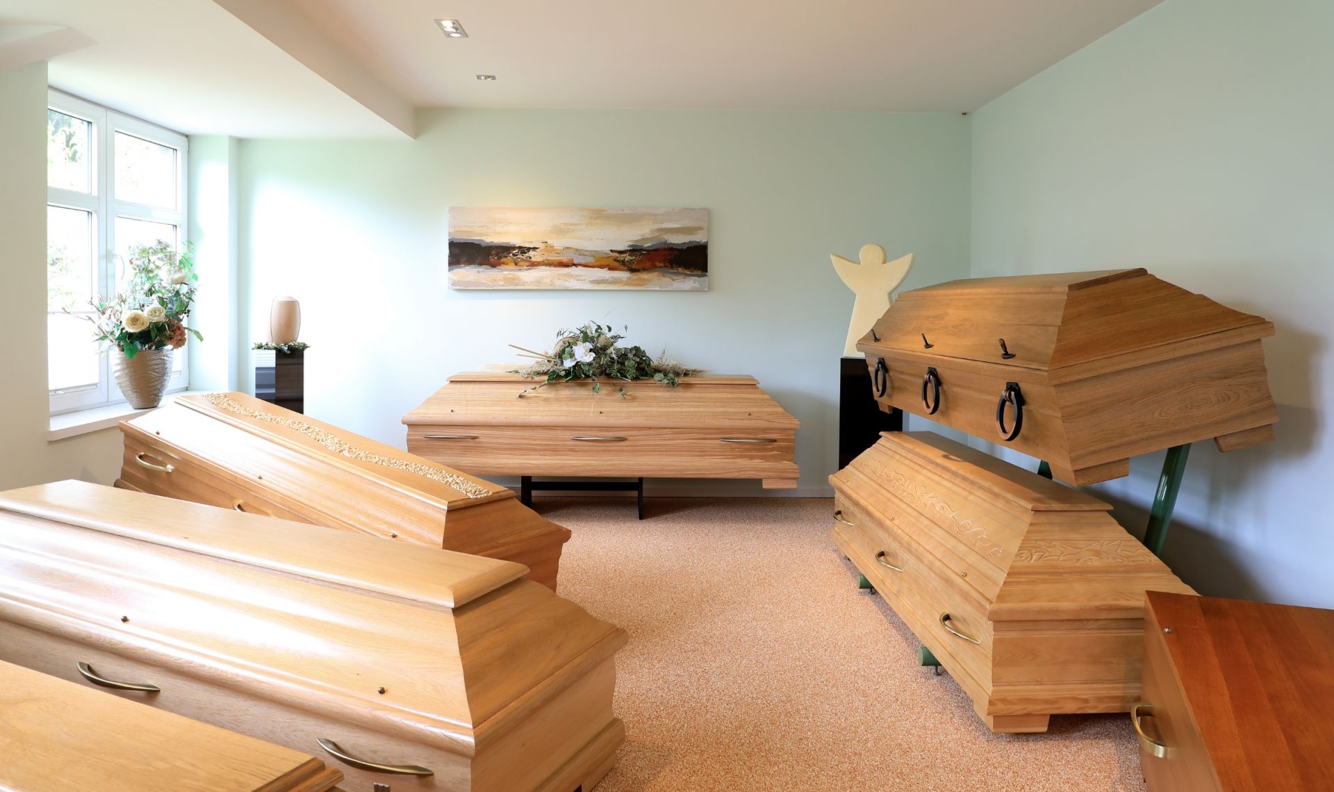 Umfangreiche Auswahl an Särgen, Urnen und Sterbewäsche